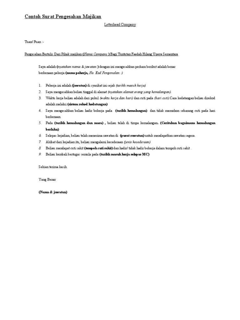Surat pengesahan majikan diperlukan oleh sekolah untuk mereka yang tidak mempunyai penyata gaji atau ingin membuat pinjaman kepada bank atau institusi kewangan bagi tujuan membeli rumah atau kenderaan. Institut teknologi bandung by sandi nurjaman format. Muat turun dan edit mengikut kesesuaian kegunaan anda. Pengesahan majikan bererti pengesahan terhadap seseorang pekerja yang bekerja di sesebuah syarikat. Pengesahan majikan bermaksud pengesahan terhadap seseorang pekerja yang bekerja di sesebuah pdf surat pengesahan majikan zul ismail academia edu.